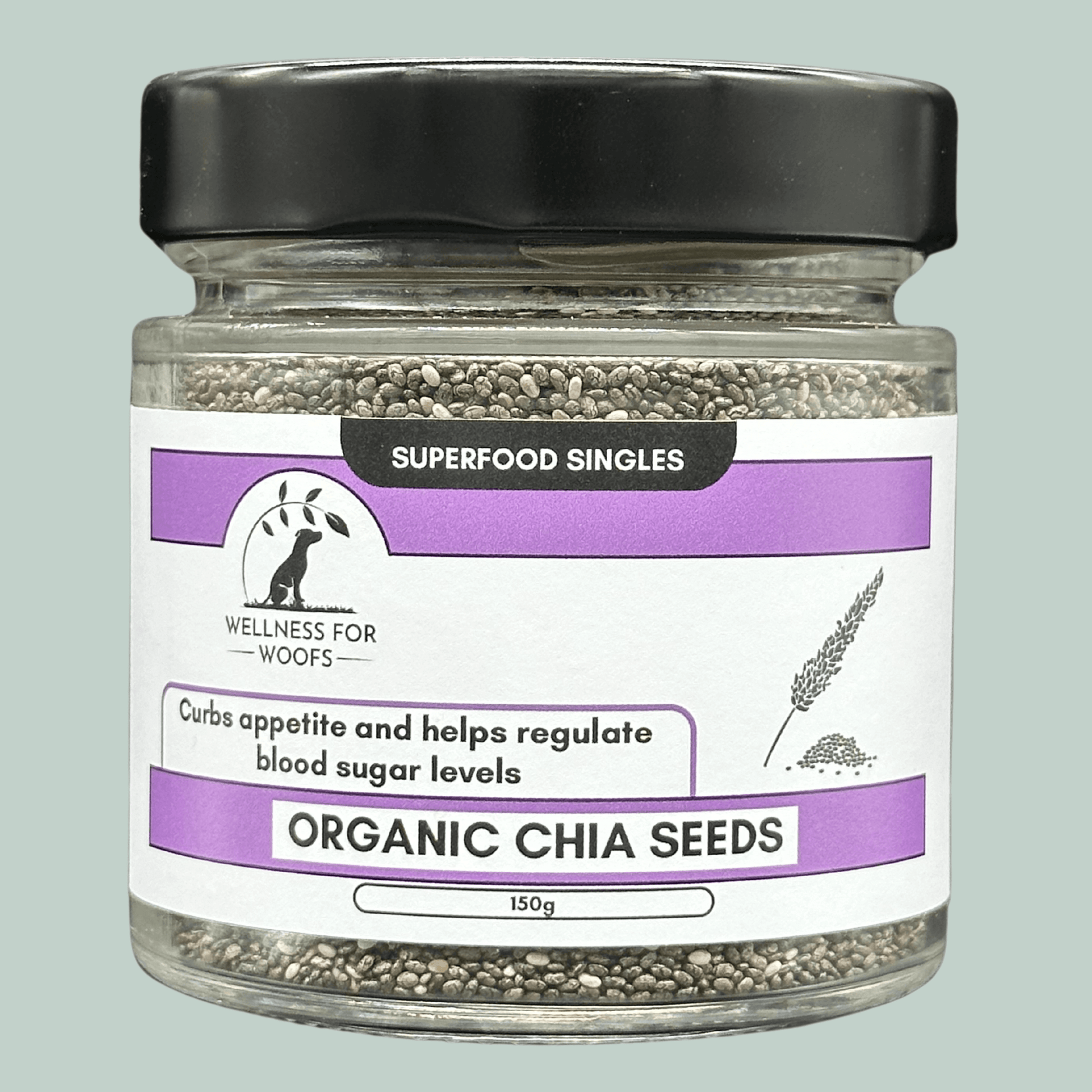 Wellness for Woofs Organic Chia Seeds (150g) – a 100% natural superfood packed with nutrients to support healthy digestion, boost energy, and promote overall vitality. Small but mighty, chia seeds are a simple and effective way to give your dog the extra care they deserve.